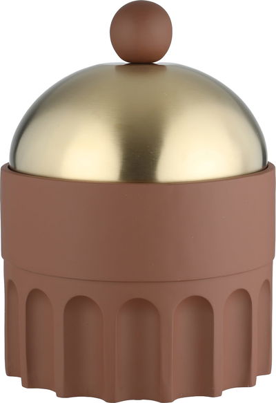 سخان طعام فخار السيف غاليري، 25x25x30 سم، غطاء أستيل، دائري عميق، قاعدة فخار - بني ذهبي
