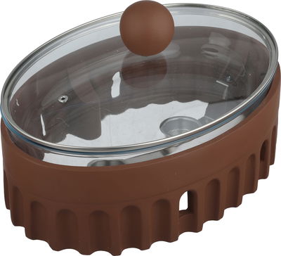 سخان طعام فخارالسيف غاليري، 35x24x15 سم، غطاء زجاج، بيضاوي، قاعدة فخار - بني product image 1