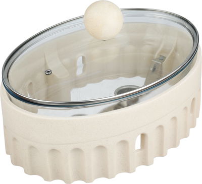 سخان طعام فخارالسيف غاليري، 35x24x15 سم، غطاء زجاج، بيضاوي، قاعدة فخار- بيج