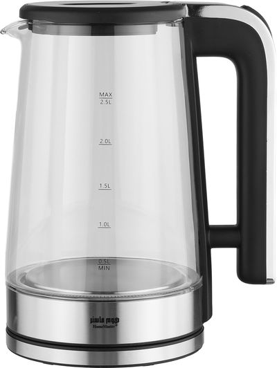 غلاية كهربائية زجاج هوم ماستر، 2.5 لتر، 1500-1800 واط، اضاءة LED، HM-2267 - شفاف فضي