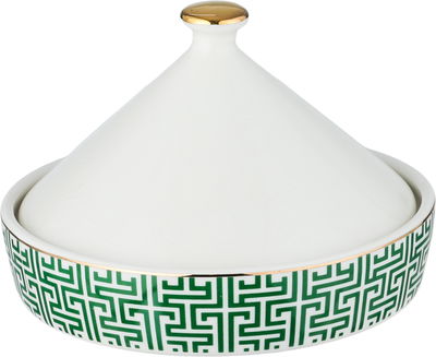 تمرية بغطاء بورسلان ون مور، 14x14x9.5 سم، دائري - أبيض أخضر